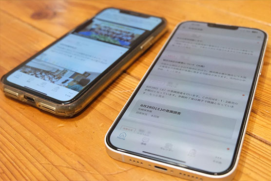 家庭からの連絡や保育園での様子をお知らせしたり、また、緊急な連絡などスマートホンアプリ「コドモン」を利用しておこなっています。