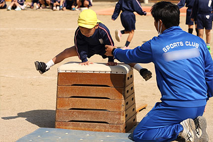 活動の中には、跳び箱や鉄棒、マット運動といった器械も取り入れています。
